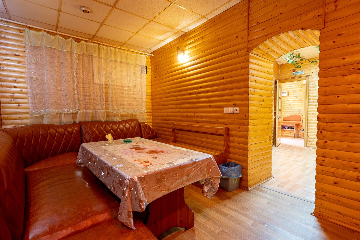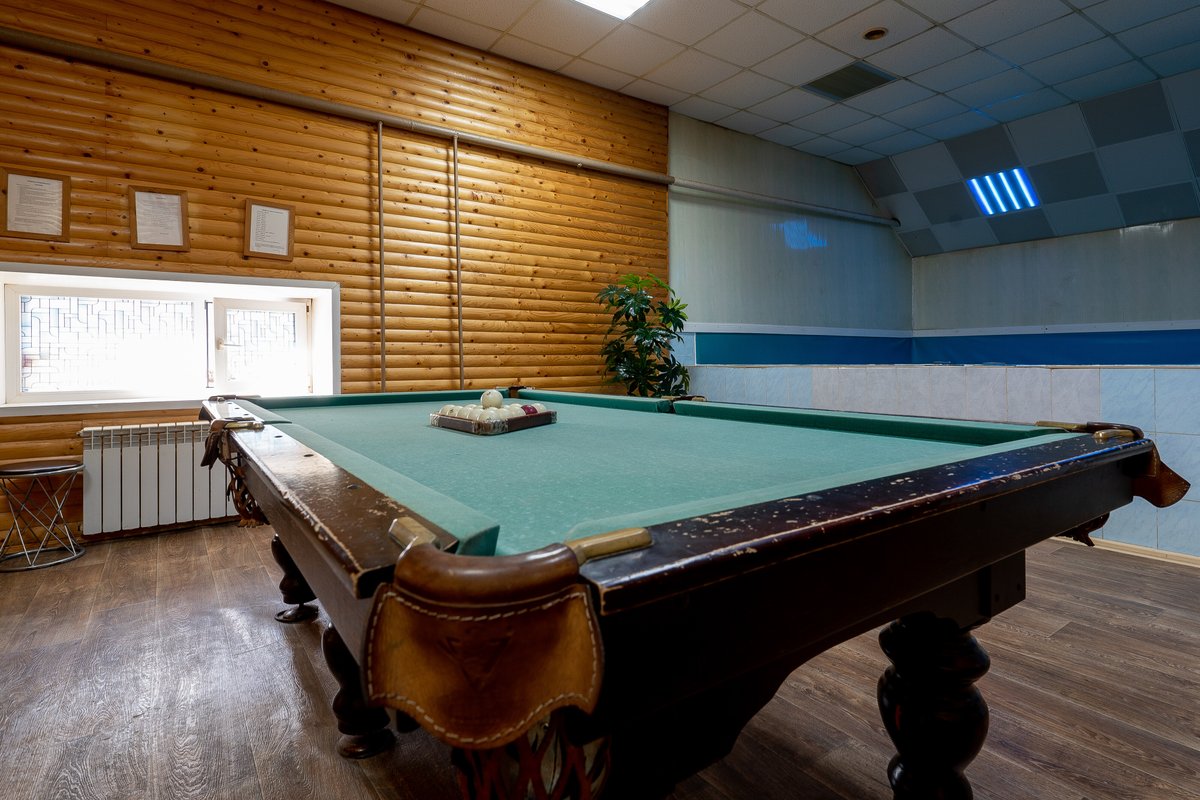 Не хочется в бассейн? Не беда! Вместо этого можно посидеть в нашей комнате отдыха. Мы постарались создать здесь уютный, практичный интерьер из максимально натуральных, экологичных материалов, подобрать мебель, которая будет одновременно удобной и приятной глазу. Надеемся, что он придется вам по душе! Для создания настроения мы можем предложить вам бильярд и караоке. Также у нас имеется бар, а при необходимости вы можете принести и собственную еду - мы не возражаем! Главное помните, что плотная трапеза непосредственно перед посещением парной - это не самая удачная идея, согласно мнению терапевтов. А вот после парной - совсем другое дело!
